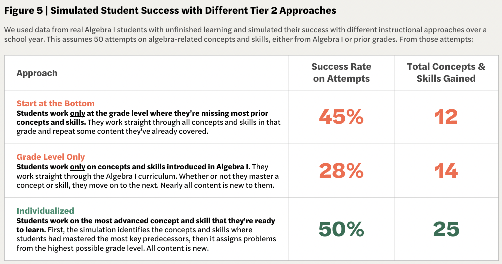 - Readiness is determined by how many of the key predecessor skills a student has mastered for a target skill. In its report Unlocking Algebra, TNTP found that in math instruction “[w]hen an individualized approach responded to students’ existing mastery of key predecessors … students learned nearly twice as much over the course of a year” as compared to a start-at-the-bottom or grade-level only approach.